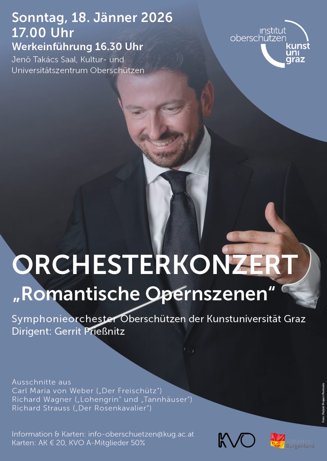 Das Symphonieorchester Oberschützen der Kunstuniversität Graz spielt unter der Leitung von Gerrit Prießnitz, Solist*innen nach Auswahlsingen